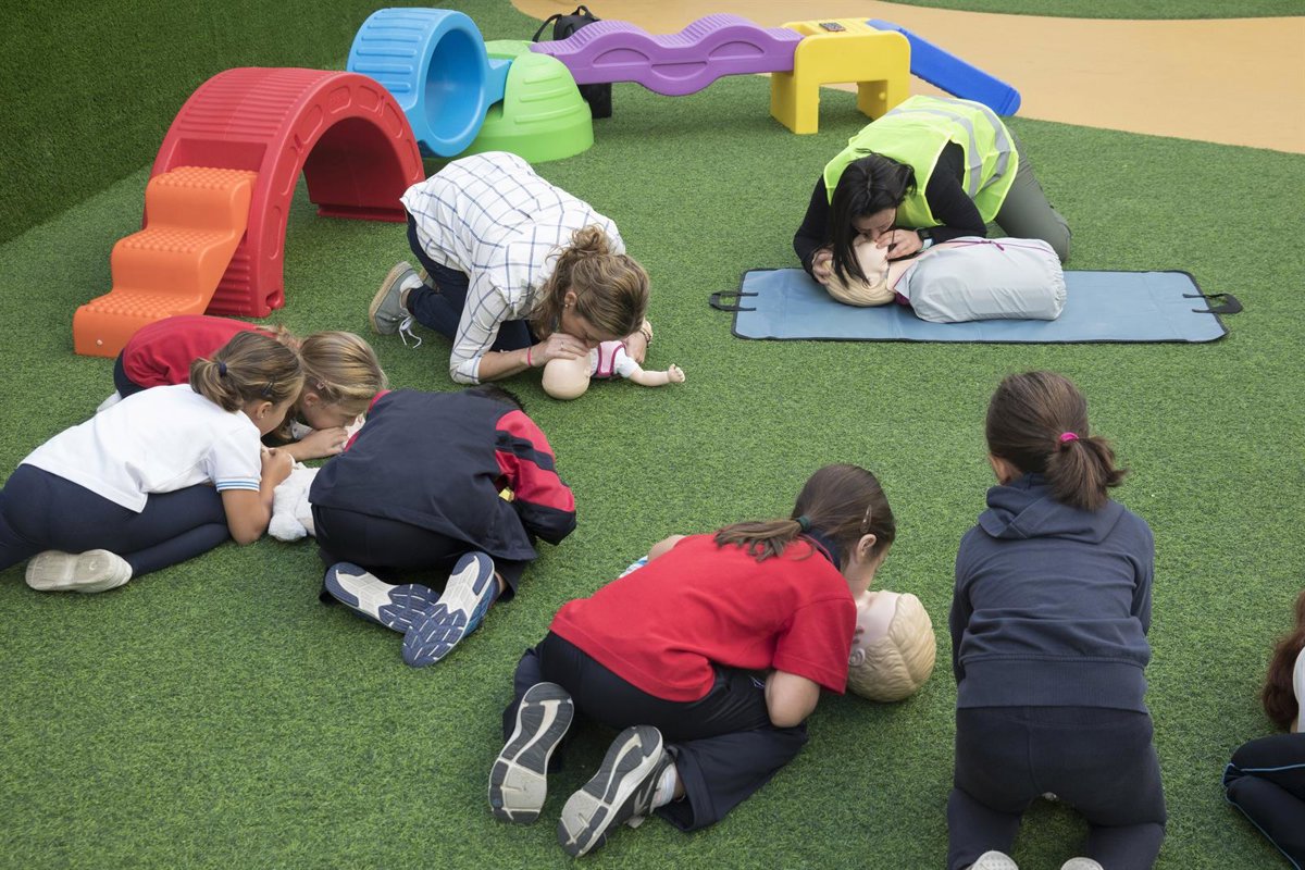 Algunos alumnos de la asignatura optativa de 'Creación de Agentes de Salud', de sexto de primaria a tercero de ESO, compartieron sus conocimientos con los estudiantes más pequeños, de PK y K, a los que explicaron la importancia de conocer estas técnicas de reanimación cardiopulmonar, según ha informado el centro en un comunicado.