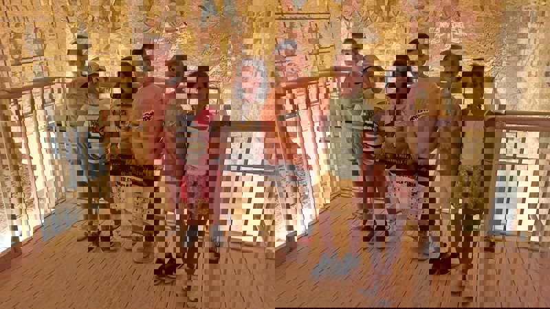 Fue precisamente en esta escala, pero en pleno desierto, donde los alumnos del proyecto educativo "Tocando la Historia" visitaron en persona la tumba del mítico faraón Tutankamón (quien habría gobernado entre los años 1334 y 1325 previos a la era actual), junto con su momia y su sarcófago. El mausoleo subterráneo del legendario "Faraón Niño", excavado en la roca, se encuadra en la necrópolis del Valle de los Reyes, donde hasta el momento han sido descubiertas más de 60 tumbas de monarcas del Antiguo Egipto.