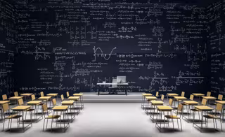Imagen de recurso con problemas matemáticos en una pizarra de grandes dimensiones - US