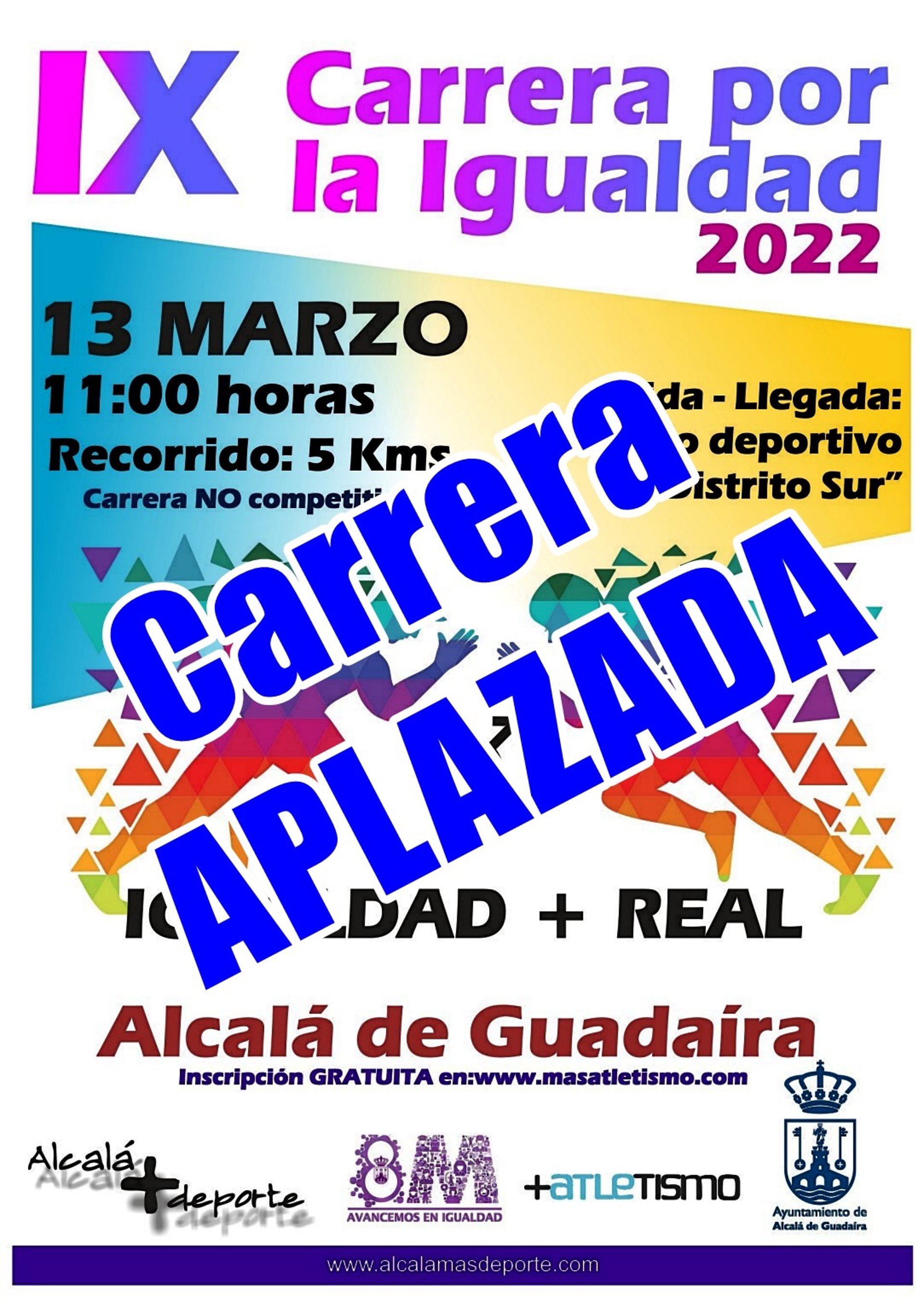 La Carrera de la Igualdad de Alcalá de Guadaíra (Sevilla) - , prevista para este doningo, ha tenido que ser aplzada por las previsiones metereológicas. La previsión de lluvias ha obligado a aplazar el evento que se hará en las próximas fechas, según ha indicado el Ayuntamiento alcalareño en un comunicado.