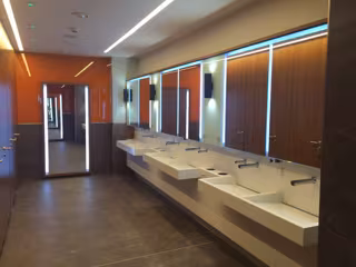 La reforma integral acometida en los aseos de Los Arcos, los distinguen de los baños tradicionales por su diseño vanguardista. Las instalaciones cuentan con un inodoro para adulto, un inodoro para niño y cambiador para bebés; así como una sala adaptada para personas con movilidad reducida. Presentando también especial atención a la decoración, con un jardín vertical y paredes de color naranja en consonancia con la marca del centro.