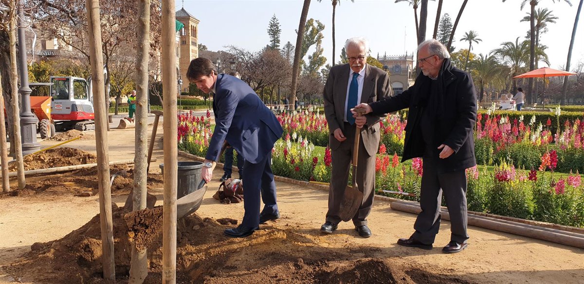 En concreto, dentro de las actuaciones en los jardines históricos a través de recursos propios, este miércoles se ha iniciado a plantación de 105 ejemplares de 'cersis siliquastrum' en la Plaza de América del Parque de María Luisa. "Esto supone una iniciativa que no tiene precedente en diez años, puesto que no se habían realizado plantaciones en este espacio verde, que es una verdadera referencia de la ciudad, durante la década", explica Guevara.