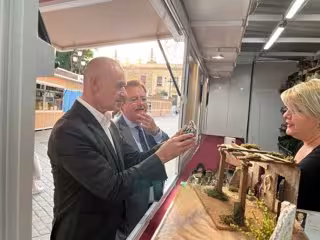 El alcalde de Sevilla, Antonio Muñoz, junto al delegado de Gobernación, Fiestas Mayores y Área Metropolitana, Juan Carlos Cabrera, ha compartido con los artesanos y comerciantes de la Feria los preparativos previos a la inauguración de esta cita que es referencia de la artesanía del Belén a nivel nacional y que cuenta con un total de 15 expositores, uno más que el pasado año, según ha recogido el Consistorio hispalense en un comunicado.