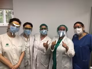 Sanitarios de la Unidad de Extracción del Virgen del Rocío, con las pantallas fabricadas por voluntarios de 'Cantillana imprime vidas' - ASAJA - Archivo