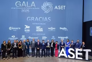 Durante la gala se han entregado los Premios ASET 2025. Torre Sevilla recibió el premio al Impacto y Compromiso con el destino Sevilla por su oferta de ocio y dinamización turística. Aire Ancient Baths Sevilla obtuvo el premio a la Excelencia en la Experiencia Turística, en reconocimiento a la modernización de su enclave. Guillermo Cruz García recibió el Premio María José Uruñuela 2025 por su trayectoria profesional en proyectos emblemáticos como Expo 92, Cartuja 93 e Isla Mágica.