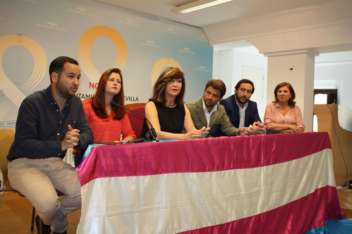 La presidenta de la asociación, Mar Cambrolle, ha celebrado este martes una rueda de prensa acompañada de los concejales del PP Pía Halcón y Beltrán Pérez; el concejal de Ciudadanos Francisco Moraga; la portavoz de Participa Sevilla, Susana Serrano; y el portavoz municipal de Izquierda Unida, Daniel González Rojas, para dar cuenta de las dificultades que está encontrando para la organización del III Orgullo Trans en la ciudad hispalense.