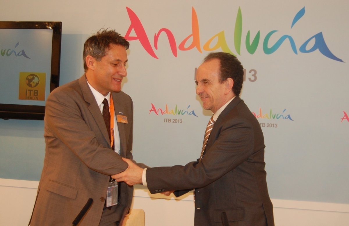 El consejero de Turismo y Comercio, Rafael Rodríguez, suscribió este jueves la renovación del acuerdo de colaboración con el operador alemán Schaunsland, convenio que tiene como principales objetivos "incrementar los turistas germanos que viajan a Andalucía en temporada media y baja, y promocionar el segmento ligado a circuitos y turismo cultural".