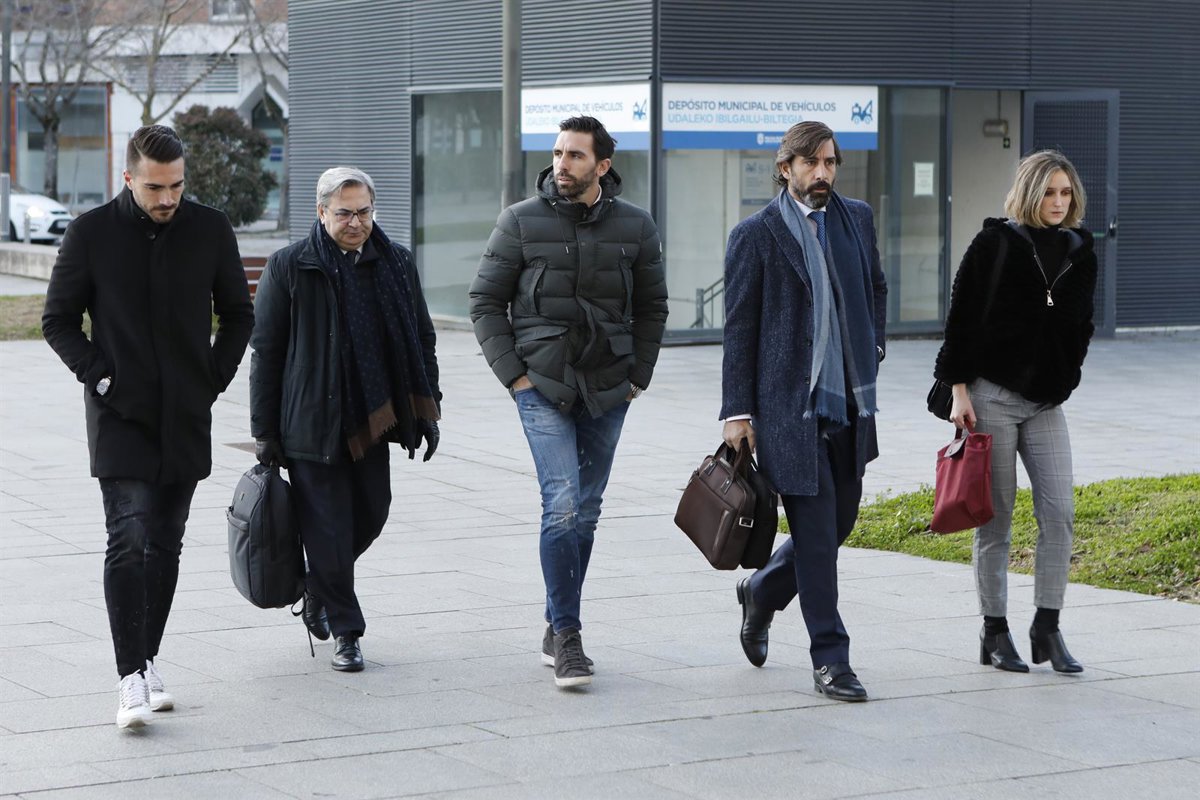 Los por entonces jugadores del Betis, Xabi Torres (1i) y Jordi Figueras (3i), a su llegada al Palacio de Justicia de Pamplona, donde comienza el juicio por supuestos amaños de partidos en la temporada 2013-2014. - David Domench - Europa Press - Archivo