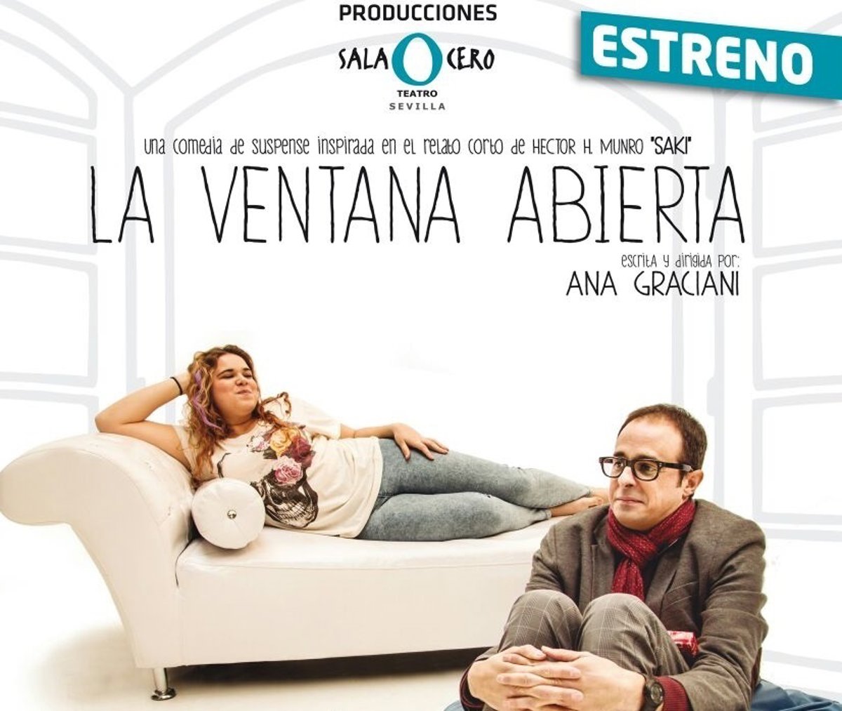 Inspirada en el relato corto 'La ventana abierta' del novelista y dramaturgo británico Héctor H. Munro 'Saki', el nuevo montaje de la dramaturga Ana Graciani, que también dirige esta última producción de Sala Cero Teatro, celebrará su estreno absoluto este viernes 6 de marzo, en el espacio de la productora en la calle Sol, donde permanecerá hasta finales de mes. La pieza cuenta con Elías Sevillano y con la joven Carmen Orellana como protagonistas y el apoyo promocional de la SGAE y su Fundación en Andalucía.
