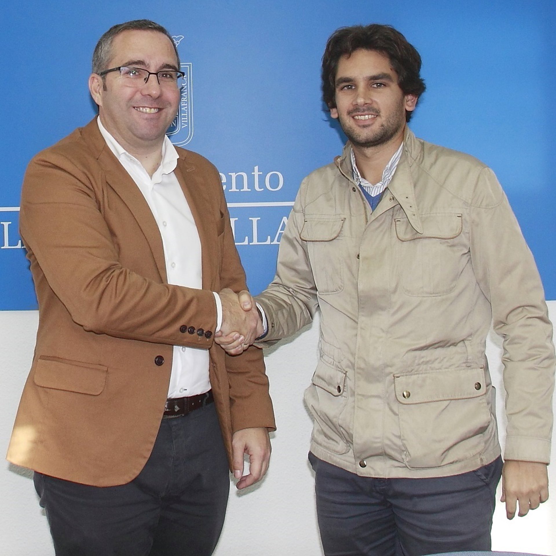 El alcalde de Los Palacios y Villafranca, Juan Manuel Valle, y Juan Carlos Hervás, en representación de la empresa Herysan 2007 S.L., han rubricado este miércoles en la Sala de Juntas del Consistorio el contrato administrativo de adjudicación para la obra denominada 'Proyecto de ejecución de biblioteca municipal en avenida de las Américas sexta fase', que cuenta con una dotación presupuestaria de 200.000 euros procedentes de los recursos del Patrimonio Público del Suelo.