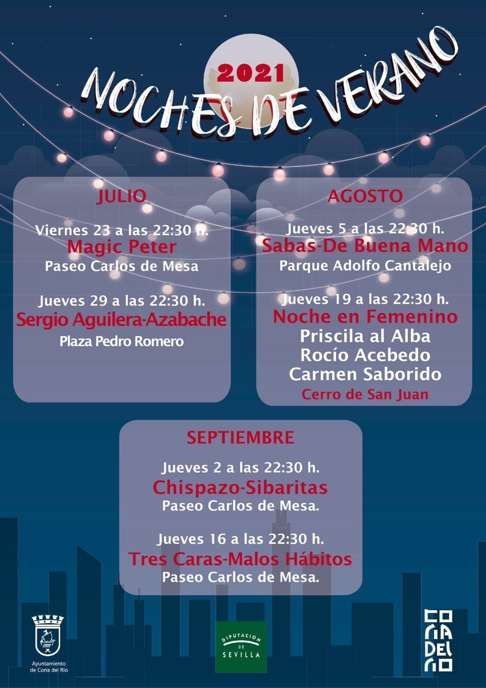 Estas Noches de Verano están organizadas por el Ayuntamiento de Coria del Río, con la colaboración de la Diputación de Sevilla a través del Plan Contigo.