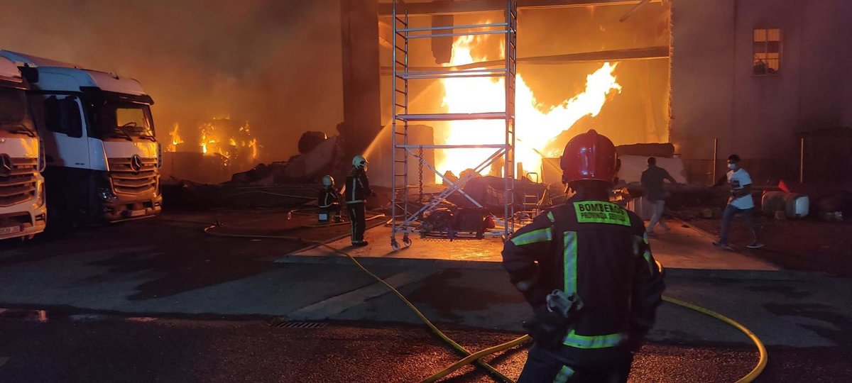 Después de tres horas lograron controlar el incendio sin que se extendiera a otras instalaciones contiguas, pero la extinción total llevará varios días. En la nave siniestrada, tanto en el interior como en el exterior, se acumulaba gran cantidad de material muy inflamable como plásticos y papel.