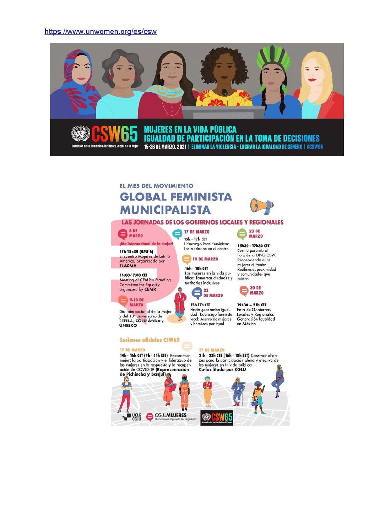 La CSW65 representa un preludio importante del Foro Generación Igualdad, convocado por ONU Mujeres y organizado conjuntamente por los Gobiernos de México y Francia, en colaboración con la juventud y la sociedad civil. Dicho Foro arrancará en México, D.F., entre el 29 y el 31 de marzo y culminará en París del 29 de junio al 2 de julio de 2021.