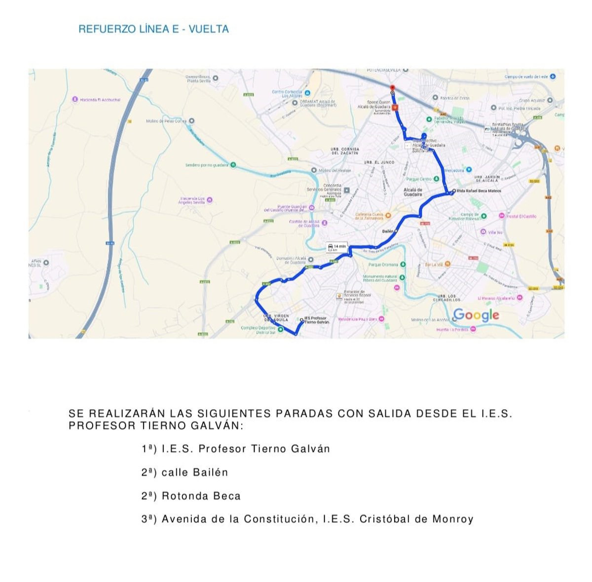 El delegado del Movilidad, David Delgado, ha mantenido una reunión con la empresa Casal, que gestiona este servicio para plantear posibles mejoras y se ha puesto en marcha un refuerzo de la Línea E, tanto por la mañana como por la tarde, para atender sobre todo el servicio de los alumnos del IES Tierno Galván que registra una alta demanda.