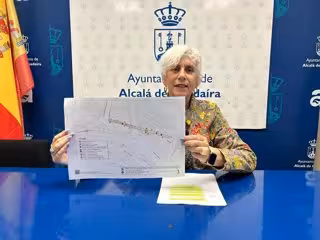 La delegada de Monumento Natural, Medioambiente y Sostenibilidad del Ayuntamiento de Alcalá, Luisa Campos, muestra un plano del proyecto. - AYUNTAMIENTO DE ALCALÁ