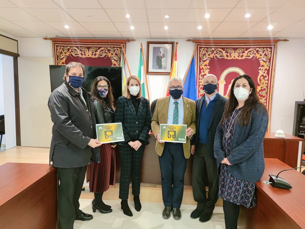 Según ha detallado el Consistorio bormujero en un comunicado, en el acto de presentación de las tarjetas han estado presentes el delegado de Economía y Hacienda, Rafael Díaz, la delegada de Bienestar Social, Leonor Benítez, y por parte de la entidad la directora de banca de instituciones de Sevilla, Vivian Martínez Roncero, y el director de la sucursal de Caixabank en Bormujos, Juan Reguera.