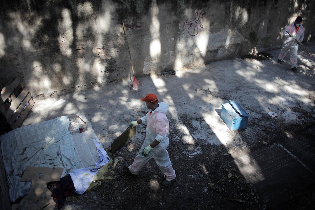 Un dispositivo integrado por efectivos de Policía Local, Lipasam, Urbanismo y Zoosanitario ha desmantelado el asentamiento de los jardines del Pabellón de la Madrina y ha procedido a la retirada de los enseres y a la limpieza y desinfección de la zona.