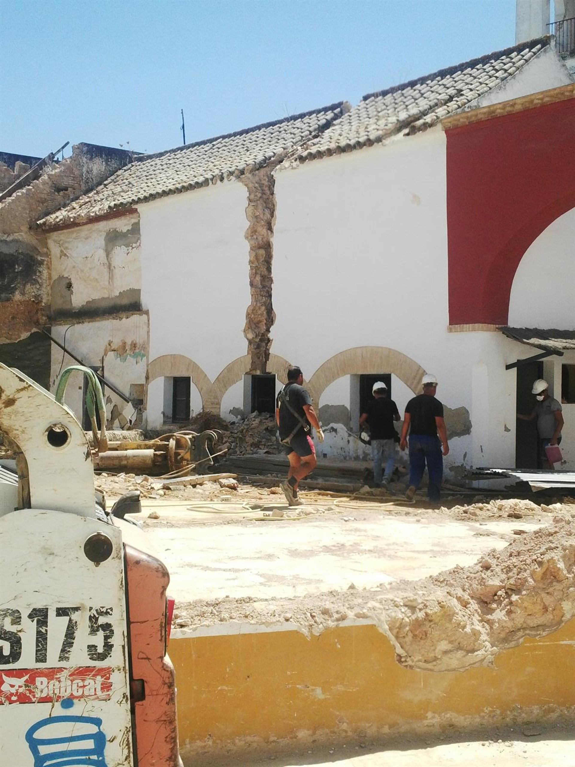 El Ayuntamiento de Dos Hermanas (Sevilla) ha comenzado las obras de preservación de la Torre del Olivar, que sita en la esquina de las calles Real Utrera y Santa Ana de la localidad, derribando para ello las casas colindantes al torreón.