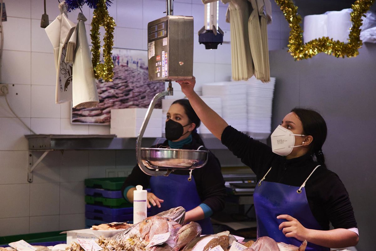 Archivo - Una vendedora pesa y marca el producto que un cliente le ha pedido en el Mercado de Triana, en foto de archivo. - Joaquin Corchero - Europa Press - Archivo