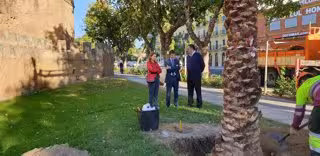 David Guevara, durante la plantación de una palmera - AYTO. SEVILLA