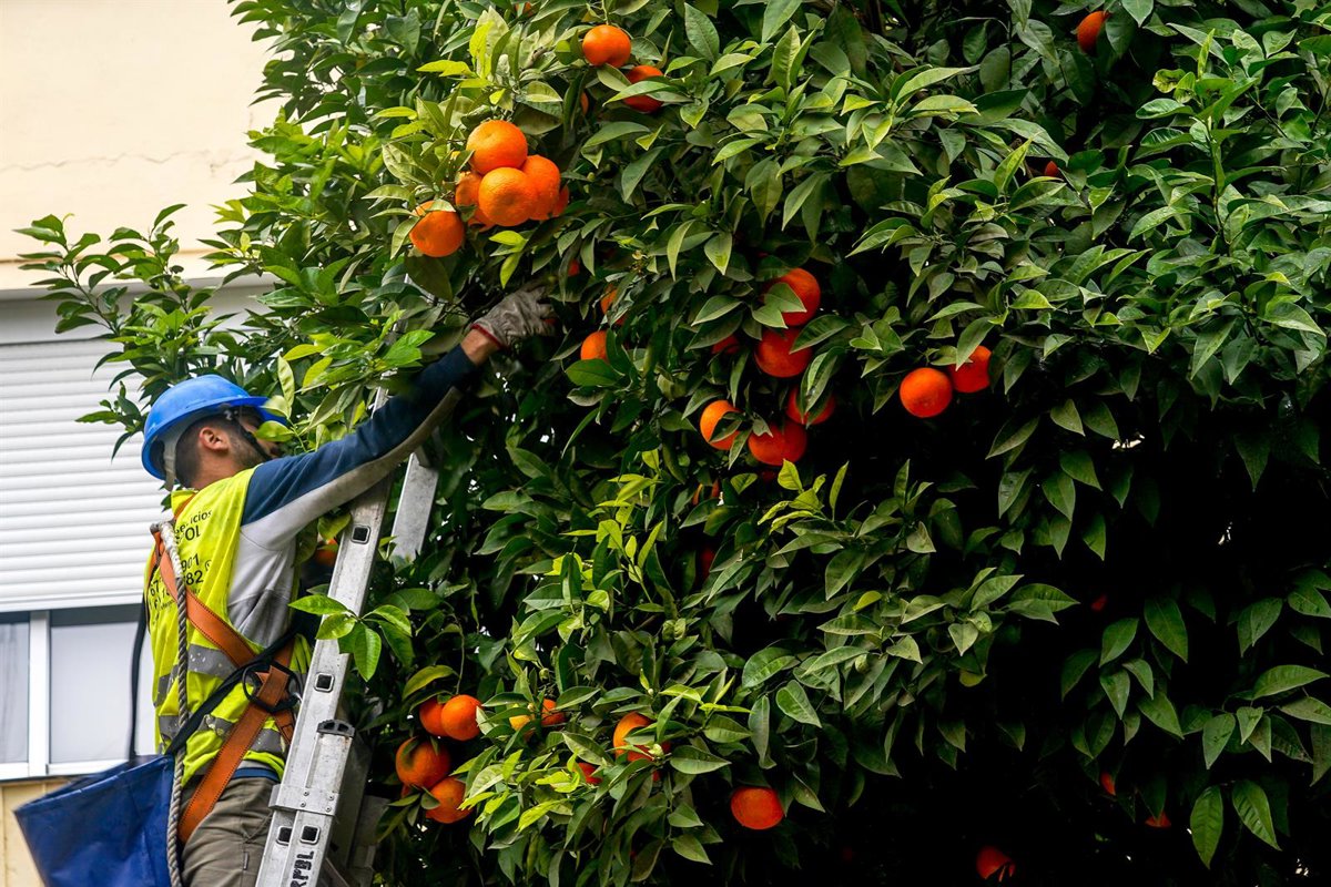 El Ayuntamiento de Sevilla, a través de la Delegación de Arbolado, Parques y Jardines, ha situado en el 98% el avance de la campaña municipal de recogida de naranja amarga.