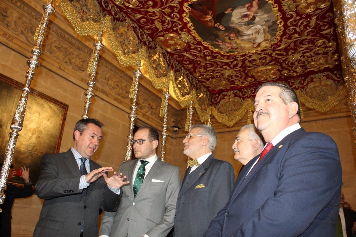 En el acto de inauguración, el alcalde ha destacado el resultado de esta importante restauración y "la importancia de ofrecer a todos los sevillanos y a quienes nos visitan la oportunidad de contemplar en el Ayuntamiento esta joya que cada Lunes Santo, junto a su gente del barrio del Tiro de Línea, la Hermandad de Santa Genoveva pone en la calle".