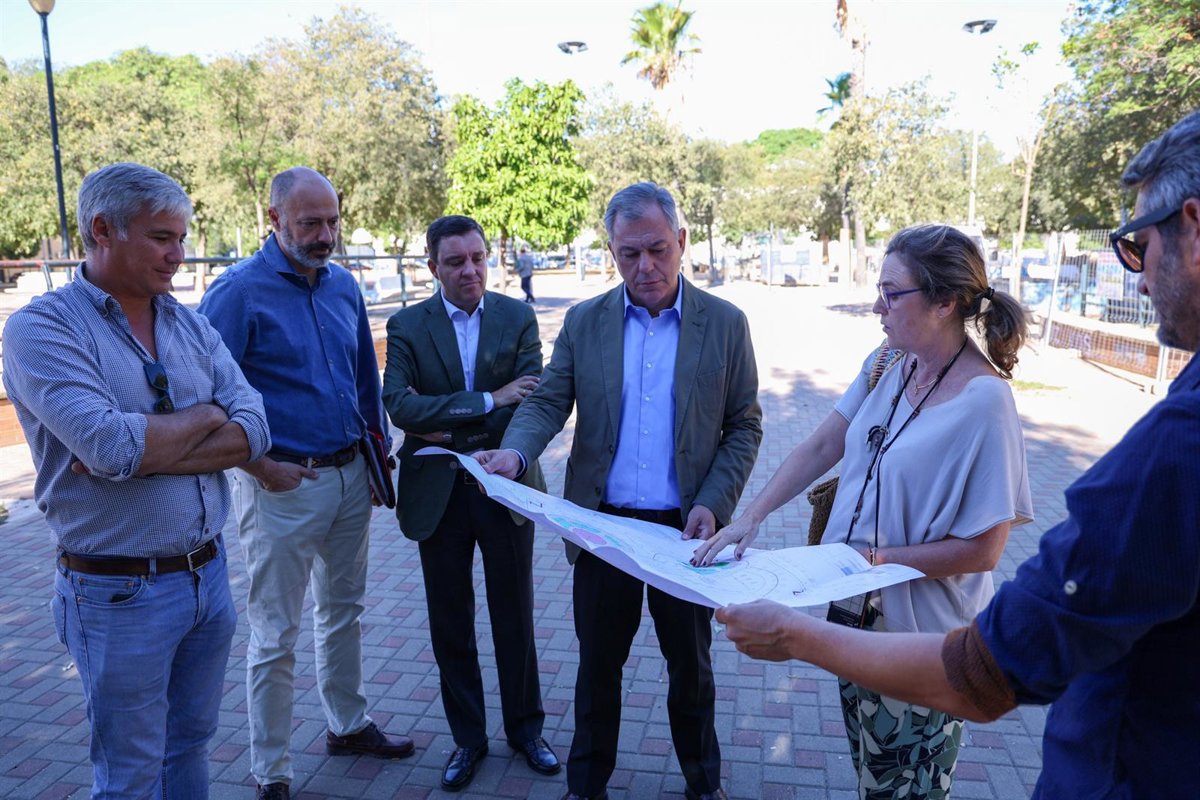 El alcalde de Sevilla, José Luis Sanz, ha estado supervisando las obras de esta gran zona verde entre las calles Estrella Antares, Estrella Adara, Estrella Sirio y Estrella Polar, y enmarcada también por los centros escolares Sánchez Mejías y María Zambrano. La remodelación se va a producir durante los próximos tres meses.