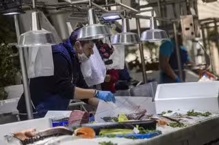 Pescadero en el mercado de abastos de la calle Feria, durante el cuarto día laborable del estado de alarma por coronavirus - María José López - Europa Press