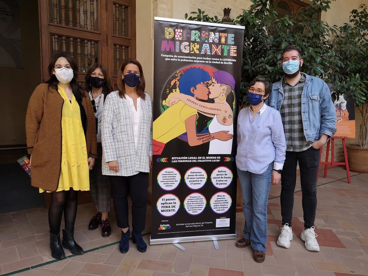 El Ayuntamiento de Sevilla, a través de la Delegación de Cooperación al Desarrollo y la asociación DeFrente han presentado este miércoles en el Palacio de los Marqueses de la Algaba la campaña 'DeFrentMigrant 3.0', destinada a visibilizar a la población migrante Lgtbi en la ciudad.