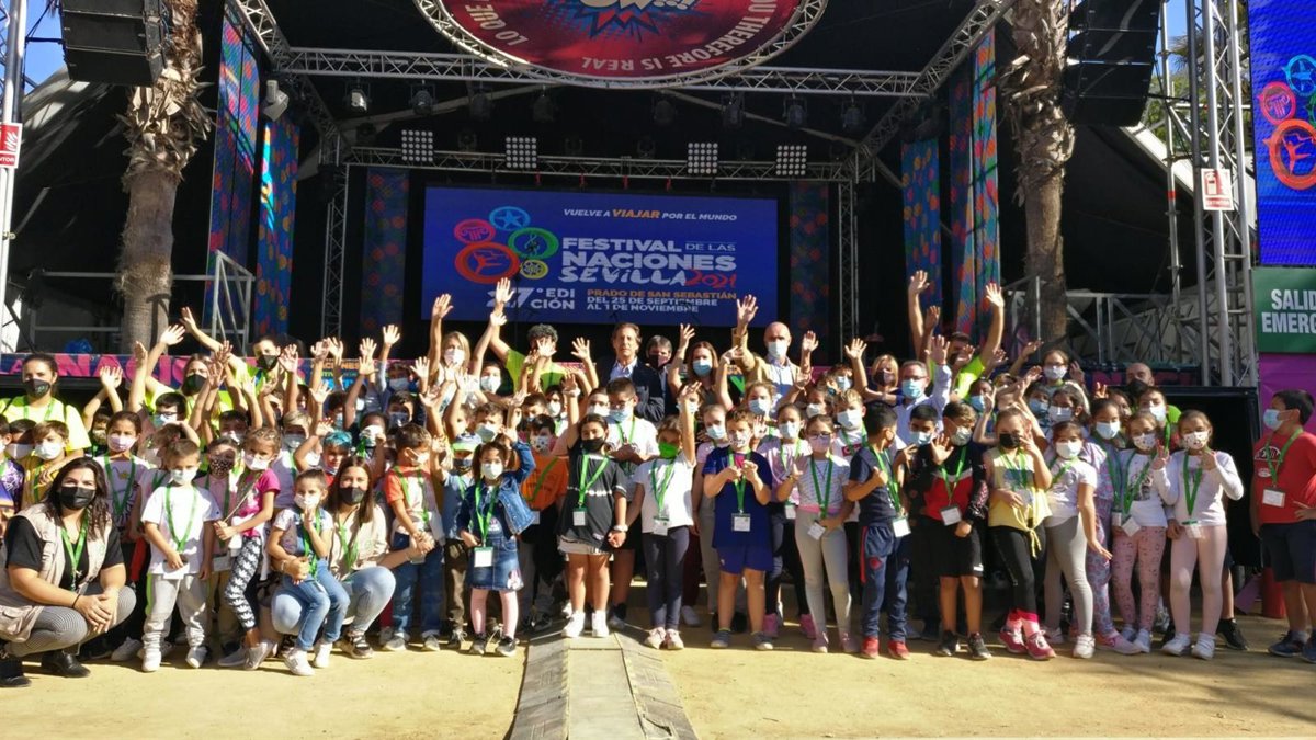El Ayuntamiento de Sevilla, a través del Distrito Sur, ha impulsado la visita este jueves de cerca de un centenar de escolares de Educación Primaria del Colegio Paz y Amistad del Polígono Sur al Festival de las Naciones, donde han participado en el programa de Educación y Sostenibilidad de este evento.