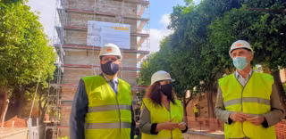 Los concejales delegados de Hábitat Urbano, Turismo y Cultura, Antonio Muñoz; del Distrito Casco Antiguo, Juan Carlos Cabrera, y de Patrimonio, Carmen Fuentes, han visitado estas obras de rehabilitación que permitirán recuperar para visita y uso público la torre, así como la adecuación de los jardines y de la portada de Maese Rodrigo.
