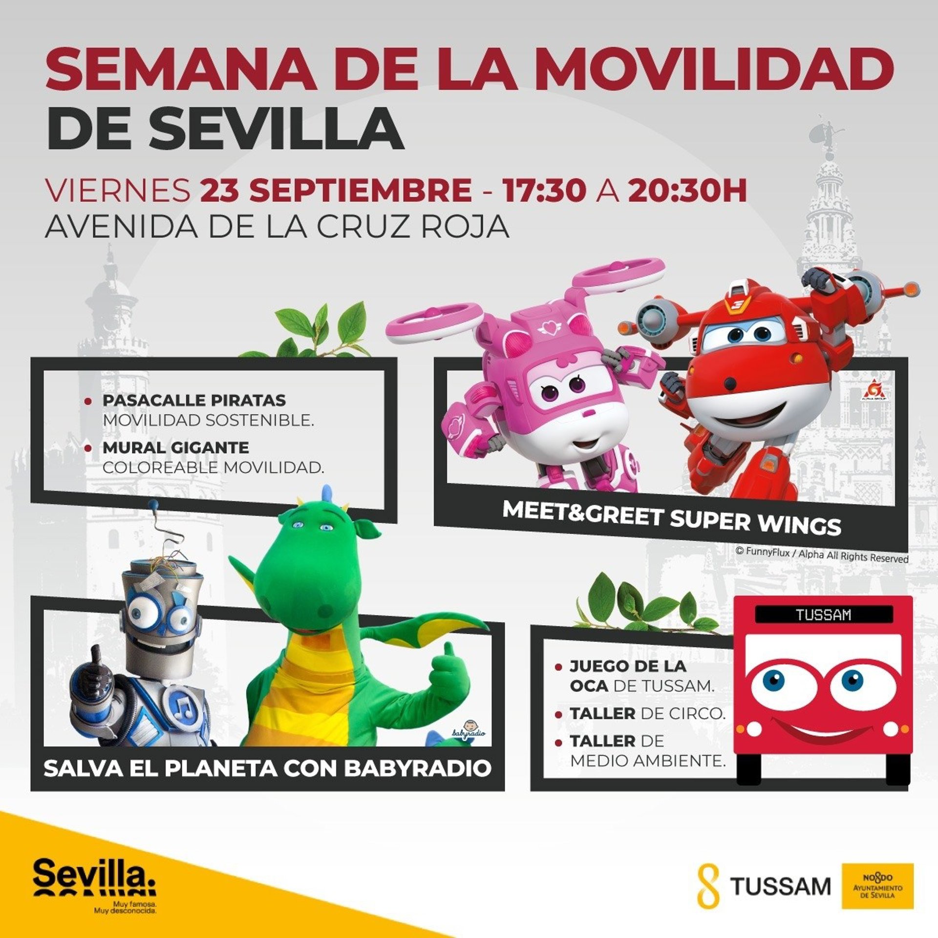 El Ayuntamiento de Sevilla, dentro de la Semana Europea de la Movilidad que este año tiene como tema 'Mejores conexiones', ha organizado para el próximo viernes 23 de septiembre actividades lúdicas en la avenida Cruz Roja, en la zona peatonal ya abierta al público. Desde las 17,30 horas se llevará a cabo una programación dirigida especialmente a un público infantil, en la que se podrá ver el espectáculo 'Salva el Planeta con BabyRadio' y la animación de los Piratas de la Movilidad. Asimismo, se instalará un mural de la sostenibilidad, unos juegos de la oca de la movilidad y talleres de medio ambiente, así como otro taller con temática circense, además de un pasacalle de los Piratas de la Movilidad Sostenible y Meet&Greet con Super Wings, ha detallado el Ayuntamiento este miércoles en una nota de prensa.