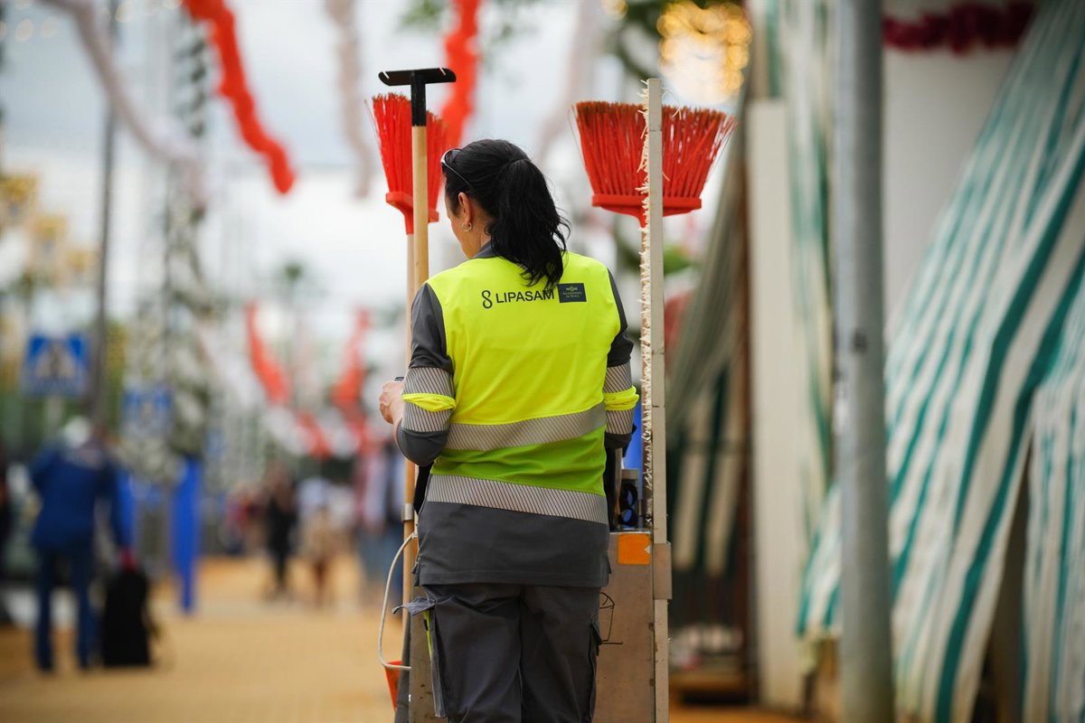 Una trabajadora del Lipasam en el Real de la Feria de Sevilla este 2025. - María José López - Europa Press
