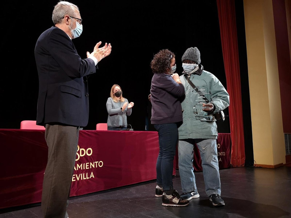 El delegado de Bienestar Social del Ayuntamiento de Sevilla, Juan Manuel Flores, en un acto de reconocimiento a personas sin hogar que han rehecho su vida. - AYUNTAMIENTO DE SEVILLA