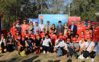 Junto con David Guevara, el presidente de la Autoridad Portuaria de Sevilla, Rafael Carmona; el presidente de la Fundación del Real Betis Balompié, Rafael Gordillo; el director de la Escuela de Football Antonio Puerta del Sevilla FC, Antonio Álvarez, y la jefa de Comunicación, Relaciones Institucionales y Sostenibilidad de la compañía Coca-Cola European Partners Iberia, Beatriz Codes, han acompañado a los voluntarios aportados por estas instituciones y entidades, más los de la Fundación Dos Bosco, ESIC y Lipasam.