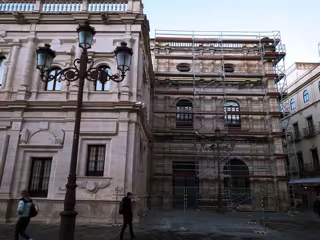 Montaje de los andamios en la fachada neorrenacentista del Consistorio, orientada a la calle Granada. - AYTO.DE SEVILLA
