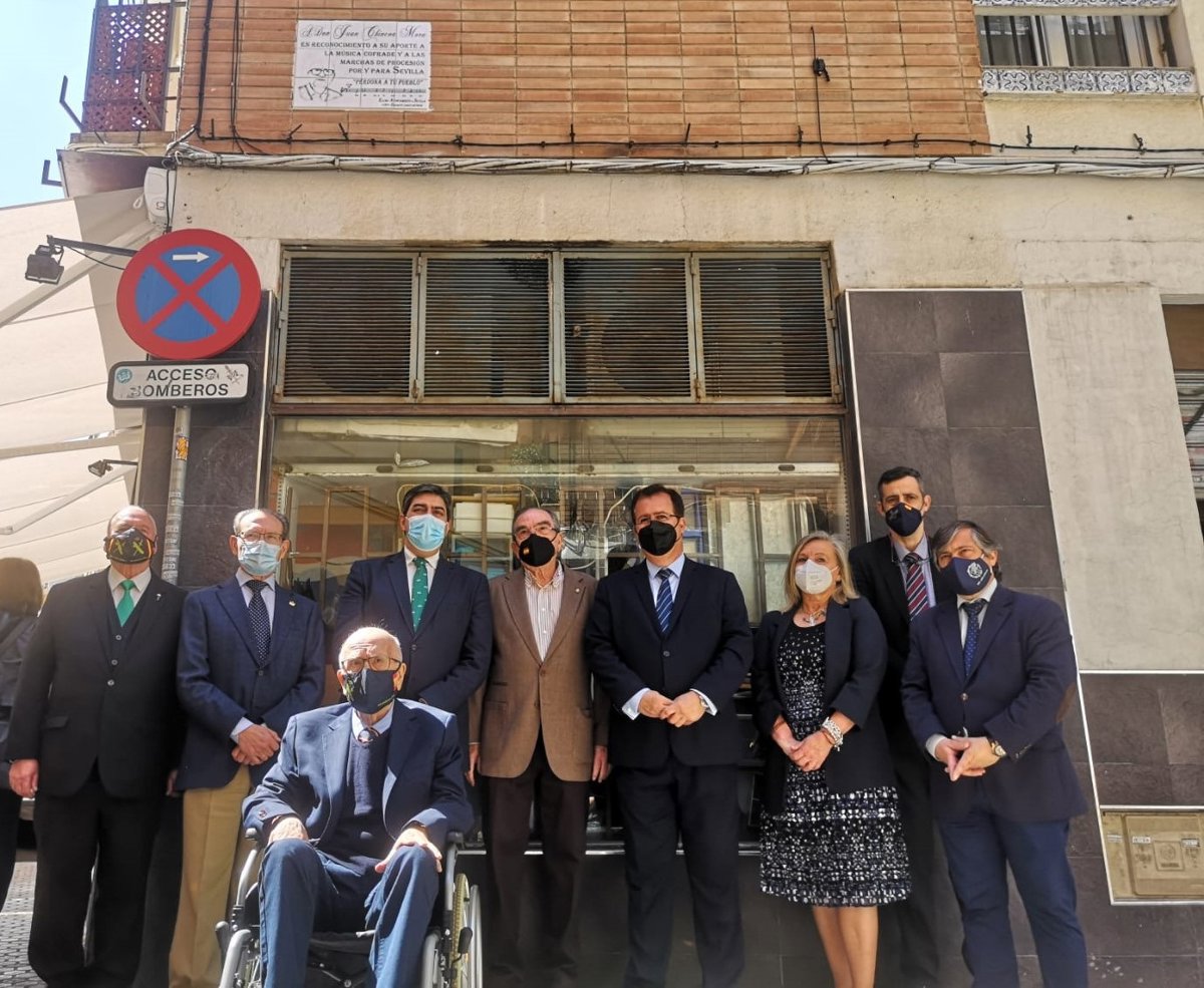 El Ayuntamiento de Sevilla, a través del Distrito Casco Antiguo, ha rendido este miércoles homenaje al músico Juan Chincoa con la colocación en su honor de una placa conmemorativa ubicada en la calle Sol para reconocer su labor y vinculación con las bandas de música procesional de la ciudad.