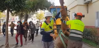 El Ayuntamiento de Sevilla, a través de la acción coordinada de Emasesa y el Distrito Macarena, ha comenzado la operación de trasplante de 19 naranjos que permanecían hasta la fecha en la calle Manuel Villalobos y que pasarán a formar parte de la dotación de sombra del patio del Colegio de Educación Infantil y Primaria (CEIP) Arias Montano.