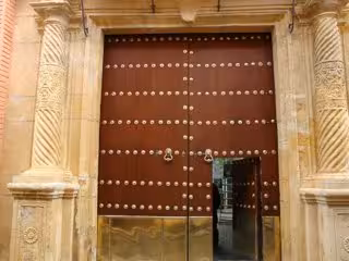 El arreglo ha consistido en decapado y lijado de la parte trasera y delantera, restauración del herraje existente, reposición de piezas en mal estado y desaparecidas (clavos, cerrojos y falleba) y corrección de la torsión y curvatura de la hojas (con tensores y calor). Durante el largo y laborioso proceso de intervención, que ha durado casi tres meses, se colocó provisionalmente una puerta de tablero de aglomerado con rastreles de madera que ha garantizado plenamente la seguridad de esta instalación cultural.