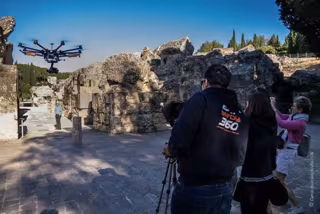 La cadena pública de radio y televisión de Gran Bretaña, la BBC, ha rodado estos últimos días fragmentos de un documental en el conjunto arqueológico de Itálica, enclavado en Santiponce (Sevilla) y donde descansan las ruinas de la antigua ciudad romana que vio nacer a los emperadores Trajano y Adriano. Para ello, el equipo audiovisual se ha servido incluso de una aeronave no tripulada o 'drone'.