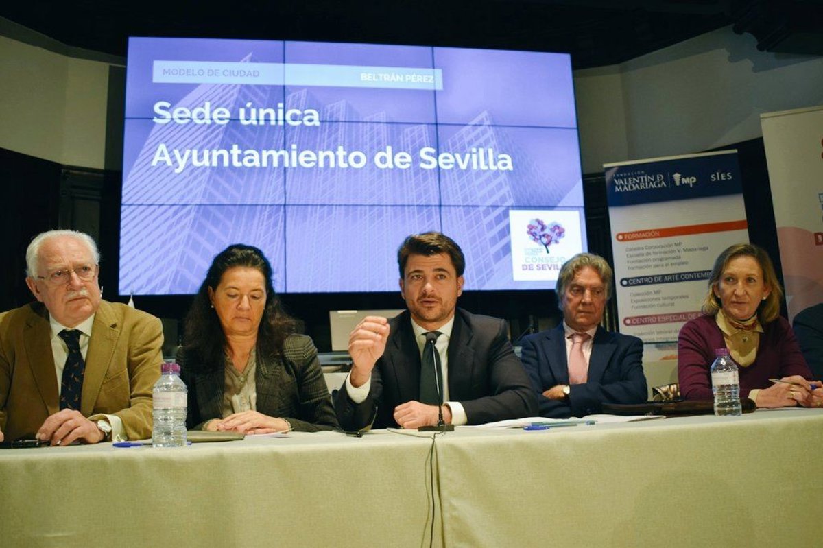 El portavoz del PP en el Ayuntamiento de Sevilla y candidato a la Alcaldía hispalense, Beltrán Pérez, ha apostado este jueves por unificar en un gran "edificio de vanguardia" dotado de tecnologías y avances de última generación y a construir en los suelos que actualmente ocupa la Gerencia Municipal de Urbanismo, las dependencias y empleados que el Consistorio y sus entidades satélite tienen distribuidas por 27 sedes institucionales.