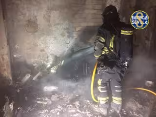 Según informa Emergencias Sevilla en su perfil de la red social X, se trataba de un incendio completamente desarrollado en el que se rescató a una persona en la azotea y dos perros en el interior del inmueble.