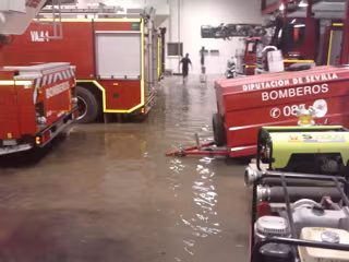 Bomberos de la Diputación de Sevilla criticaron hoy el estado del nuevo Parque Central, ubicado en Sanlúcar la Mayor, que quedó inundado este martes como consecuencia de las fuertes lluvias que azotaron la provincia.