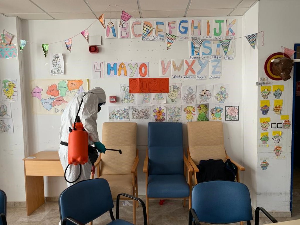 Bomberos del Sistema Provincial de Sevilla realizan este martes tareas de desinfección y limpieza en cuatro residencias de mayores, en línea con las tareas programadas por la Diputación, desde el pasado día 23 de marzo, encaminadas a frenar la expansión del Covid-19 en estos centros.