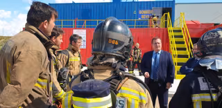 Archivo - El delegado de Gobernación, Juan Carlos Cabrera, en su visita al campo de prácticas de los Bomberos en el Puerto de Sevilla. - AYUNTAMIENTO DE SEVILLA - Archivo