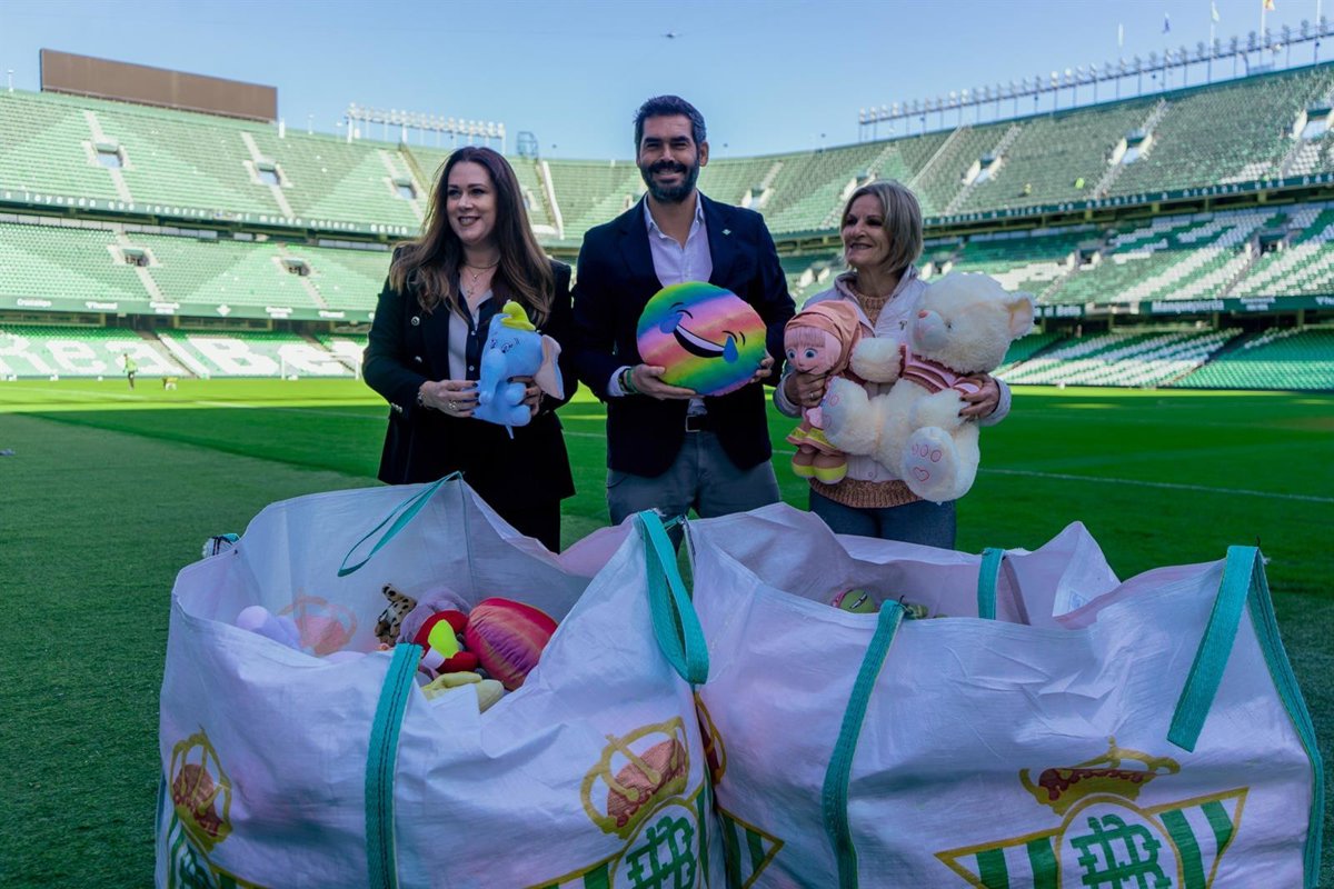 En el último partido del año en su campo, los aficionados verdiblancos arrojaron desde la grada miles de peluches que se han destinado a diferentes proyectos solidarios como los impulsados por la Comisión Española de Atención al Refugiado o los niños beneficiarios del proyecto que la Fundación tiene en Guinea Ecuatorial de la mano de Benjamín Zarandona con el objetivo de que ningún niño se quede sin regalos estas navidades.