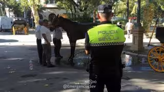 La Policía Local de Sevilla asistió este pasado jueves por la tarde a un caballo que se había desvanecido en la Plaza de España, debido a un golpe de calor, y que necesitó de asistencia veterinaria para su recuperación, según han informado a Europa Press fuentes municipales.
