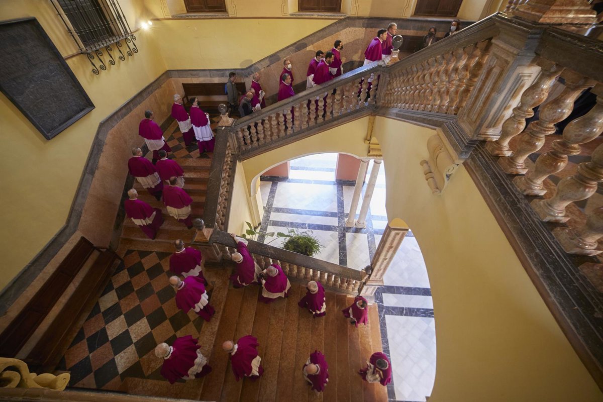 El Cabildo Catedral camina en procesión para velar los restos mortales durante el segundo día de la capilla ardiente del cardenal arzobispo emérito de Sevilla, Fray Carlos Amigo Vallejo, en el Palacio Arzobispal. - Joaquin Corchero - Europa Press
