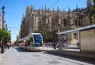 El metrocentro a la altura de la Catedral de Sevilla y el Archivo de Indias, en una imagen de archivo. - EUROPA PRESS - Archivo