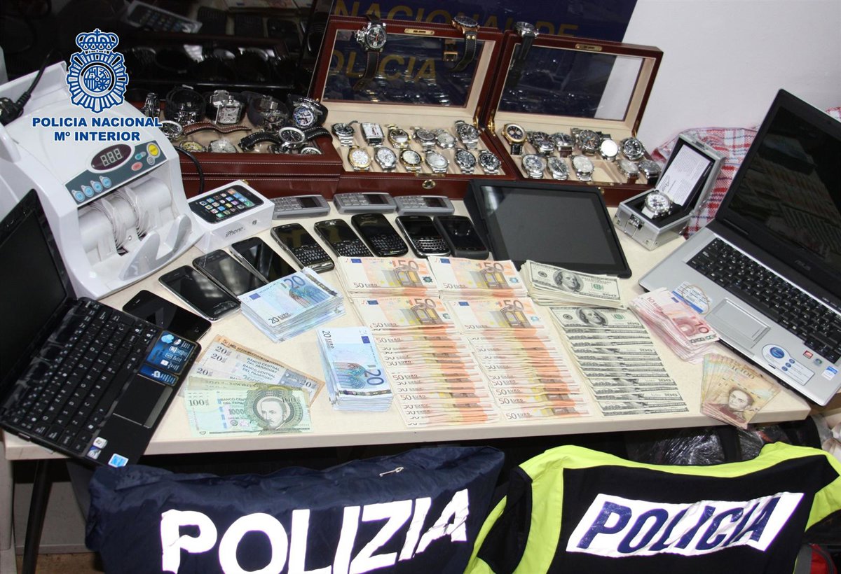 En el registro realizado en la vivienda del cabecilla se encontró una cámara acorazada, camuflada tras una de las paredes de la bodega, en cuyo interior se localizaron cámaras de seguridad desde donde vigilaba el resto de la casa, dos cajas fuertes de grandes dimensiones, dinero en metálico, relojes de gran valor, material informático y documentación. También se han intervenido tres máquinas de contar dinero, tres 'sea scootter' para propulsarse bajo el agua, una lancha motora de 11 metros de eslora, cinco vehículos y un remolque.